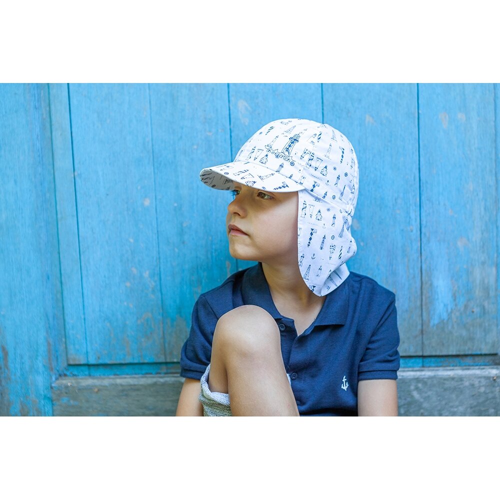 Cotton single hat with neck guard, spout and laces. The neck guard is folded and attached with stickers. Very thin material, comfortable and cute to wear.